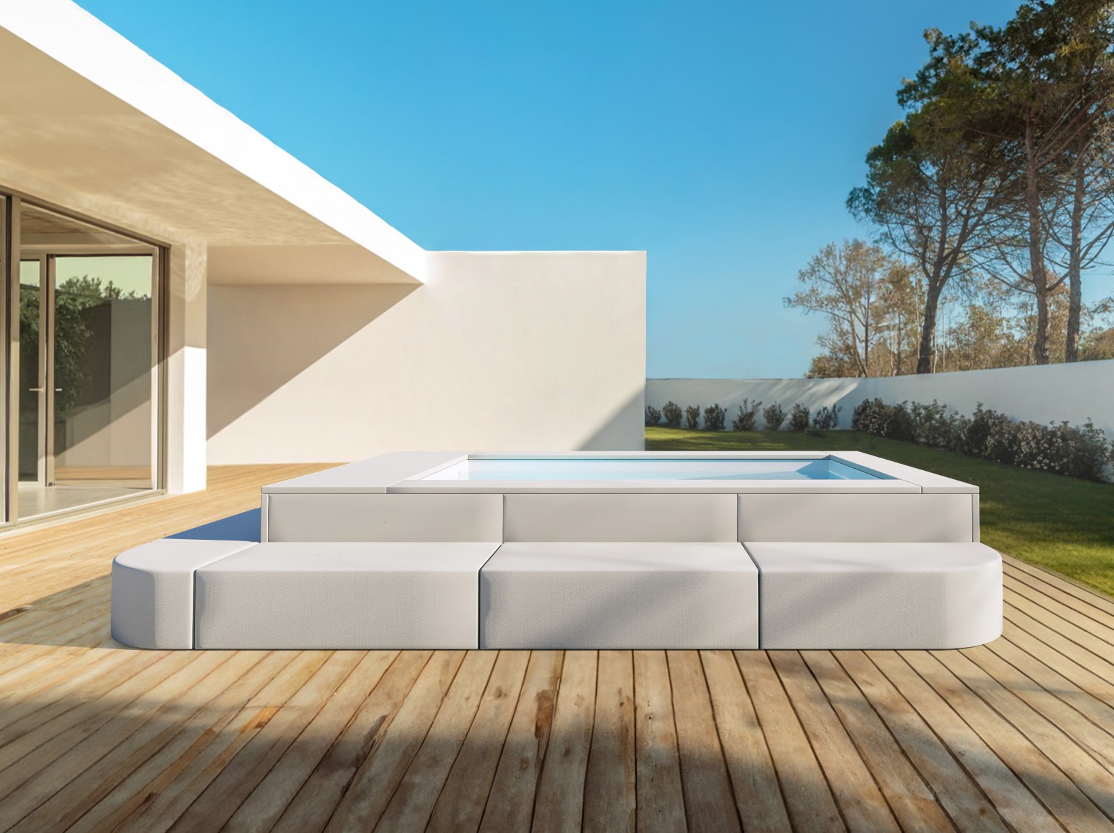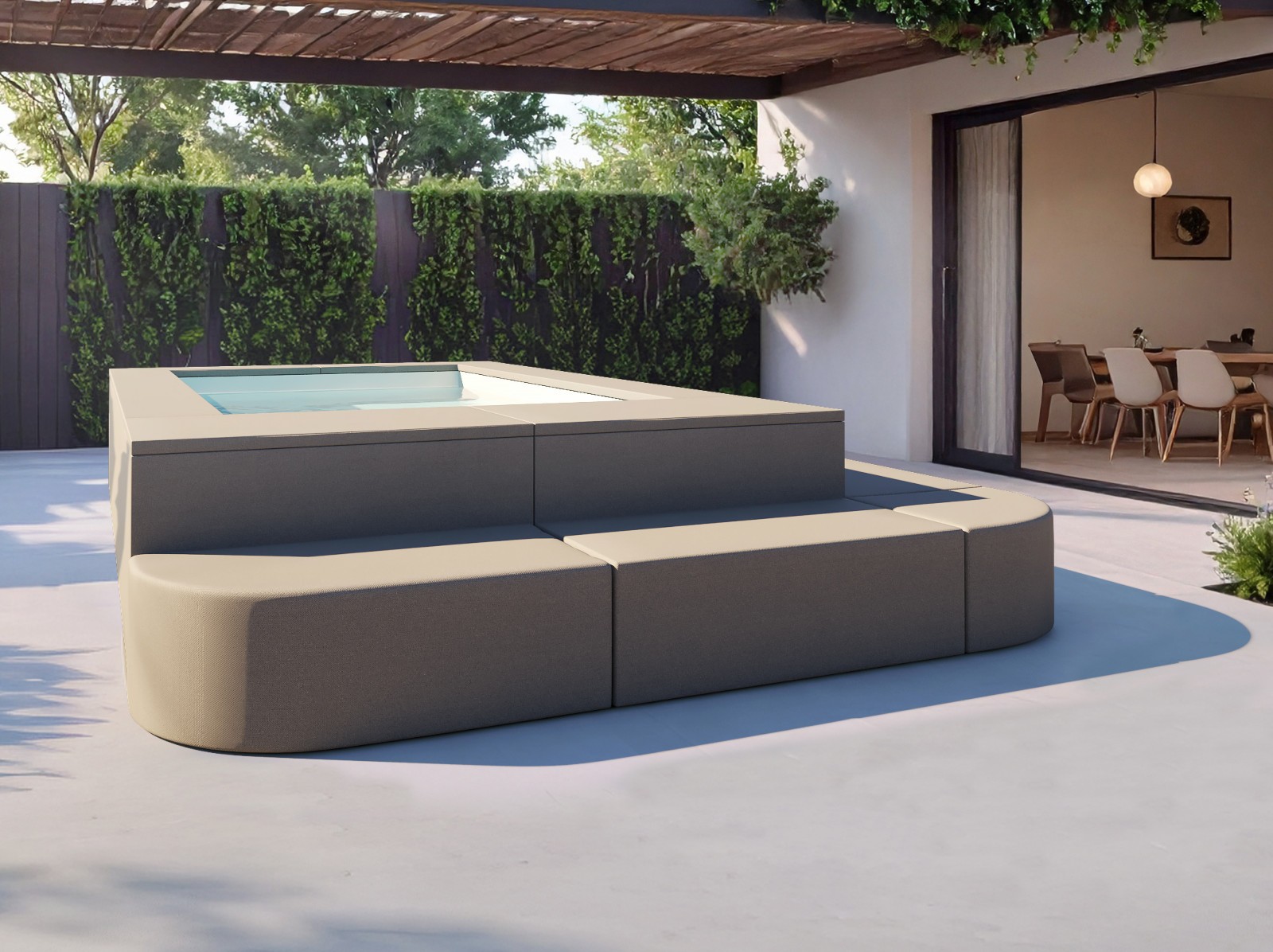 Progettata per offrire il massimo del comfort agli ospiti. Il profilo ergonomico delle chaise longue interne garantisce la corretta postura e la massima abitabilità ed agevola ogni movimento del corpo all’interno del bacino d’acqua.