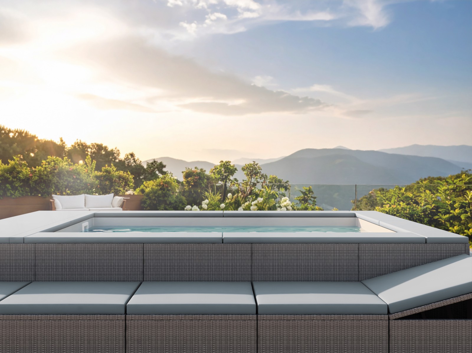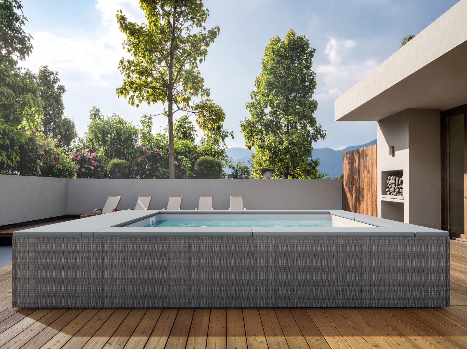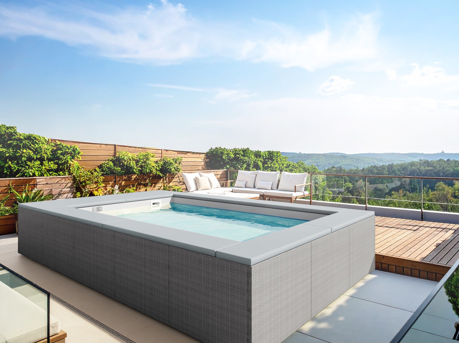 Progettata per offrire il massimo comfort agli ospiti, la minipiscina integra un sistema ad altezza costante con seduta nello spazio libero dello specchio d’acqua, che garantisce postura naturale, libertà di movimento e un’esperienza sublime di relax.