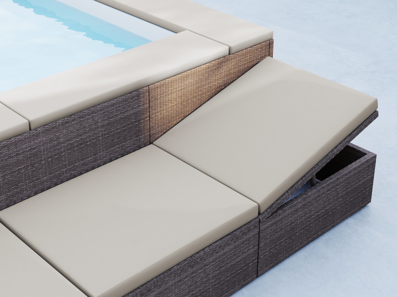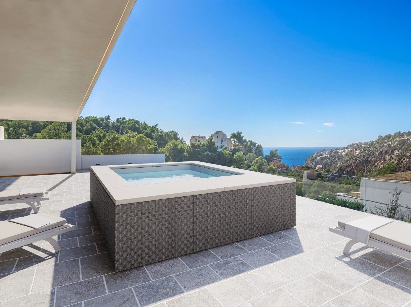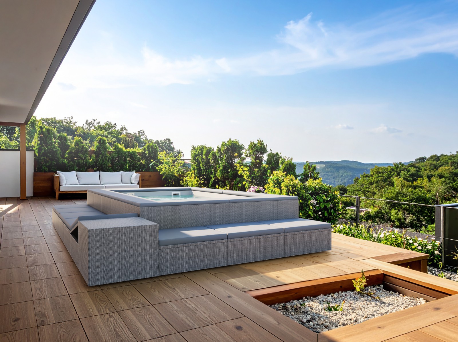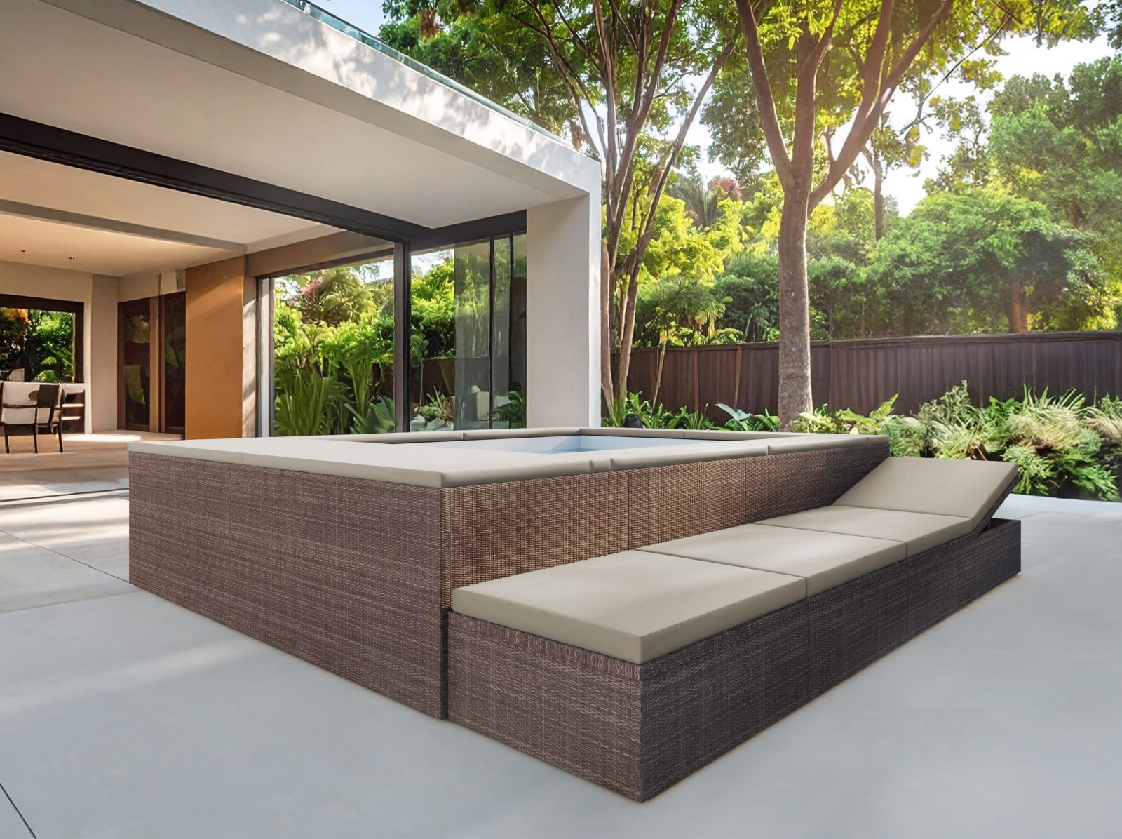 Progettata per offrire il massimo comfort agli ospiti, la minipiscina integra un sistema ad altezza costante con seduta nello spazio libero dello specchio d’acqua, che garantisce postura naturale, libertà di movimento e un’esperienza sublime di relax.